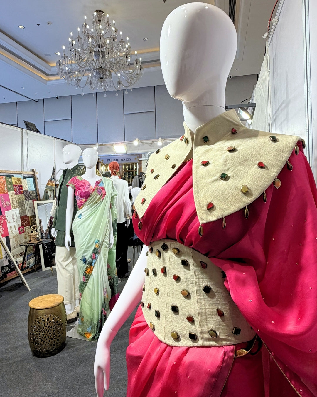 Add a perfect cinch to your outfits with this swish corset belt. Designed to flatter every frame, this accessory exudes modern royalty in each of its multicolored stone beads hand stitched over the beige fabric base. The belt features adjustable thread fastening, assuring comfort and easy movement even for all-day wear. Pair it with our Beige Maharani Collar for an infallible impact!